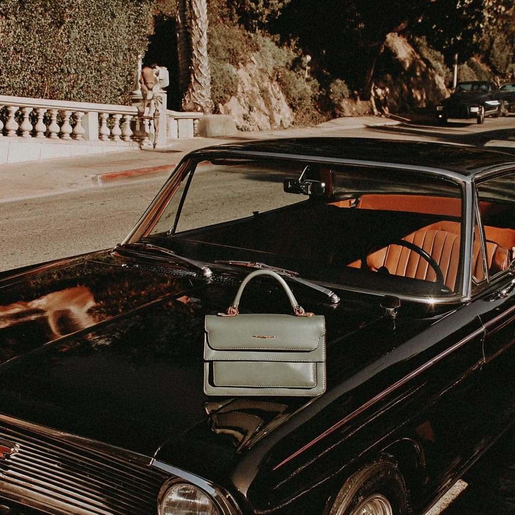 Just finished up a shoot with this beautiful dusty-sage bag. The brief was all about channeling that classic, effortless Hollywood glamour. Finding the right light on the right car was half the battle, but worth it for this look.