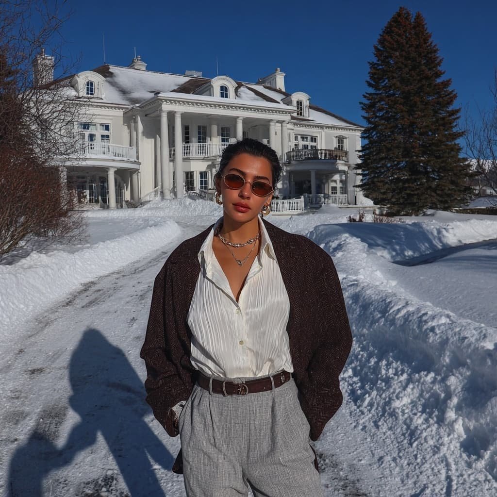 Just wrapped up a little personal project shooting this incredible look against a snowy, aristocratic backdrop. The contrast of the sharp tailoring and the red lip with all that winter white just hits different. Absolutely loved the mood we captured!